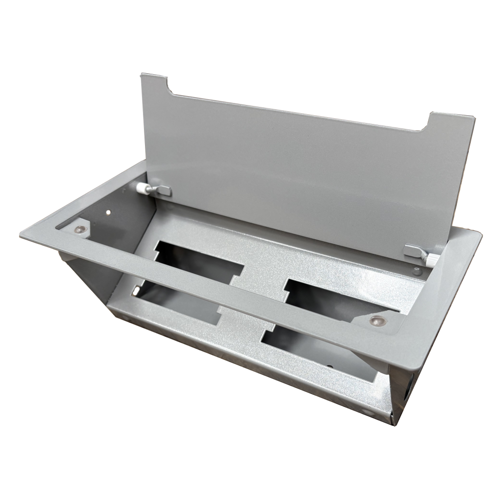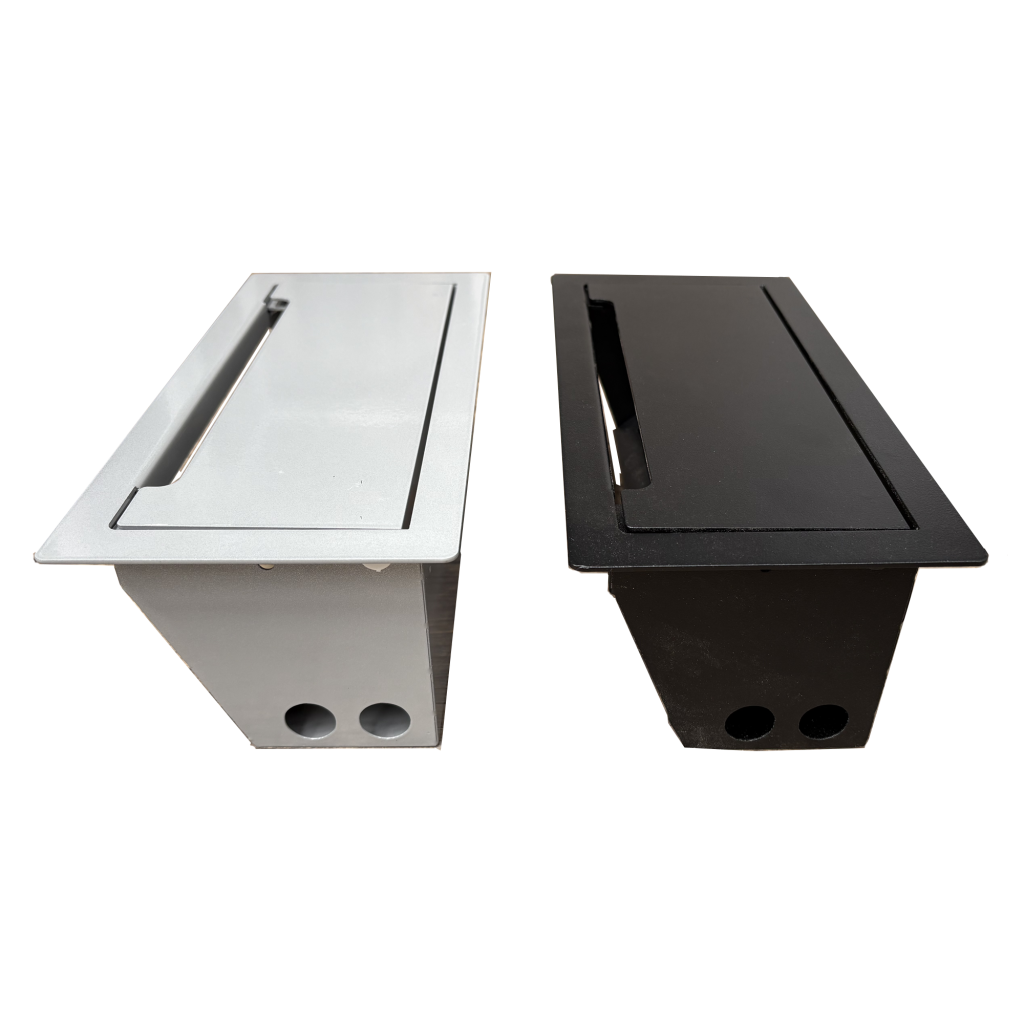 • Caja eléctrica doble metálica para empotrar en muebles, escritorios y estaciones de trabajo.